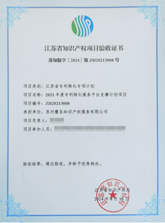 审协江苏中心下属苏州慧谷知识产权服务有限公司(以下简称“慧谷公司”)承担的江苏省专利转化服务平台支撑计划项目顺利通过验收,并获评优秀档次。
